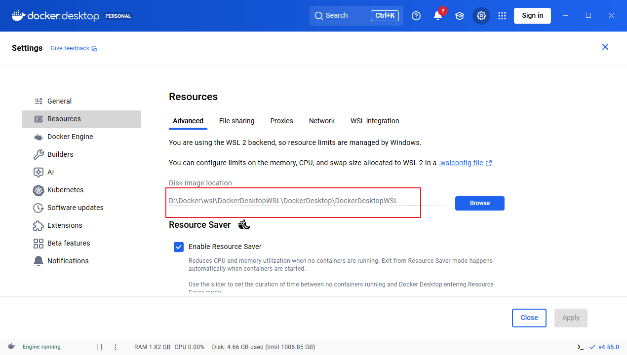 需要换一下Docker Desktop 在win上默认存储的路径位置,避免C盘爆红