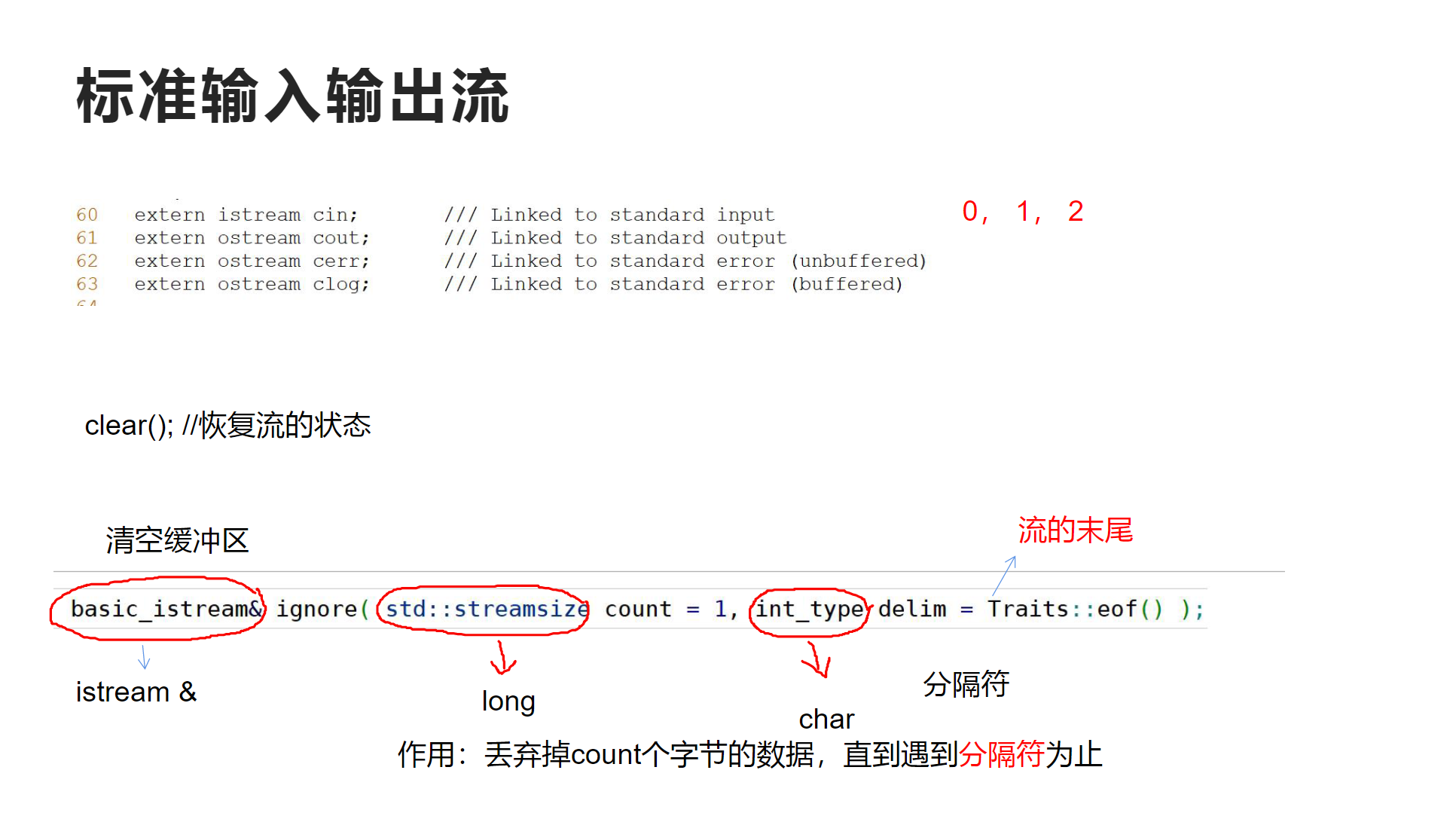 返回值时一个istream的引用,第一个参数是要舍弃的字节数,第二个是分隔符,默认值是流的末尾