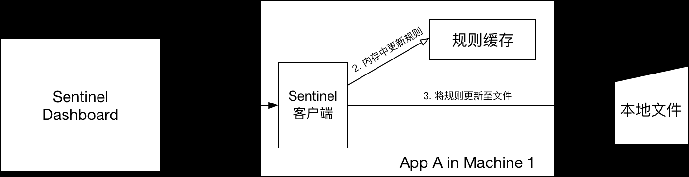 // 这样收到控制台推送的规则时,Sentinel会先更新到内存,然后将规则写⼊到⽂件中