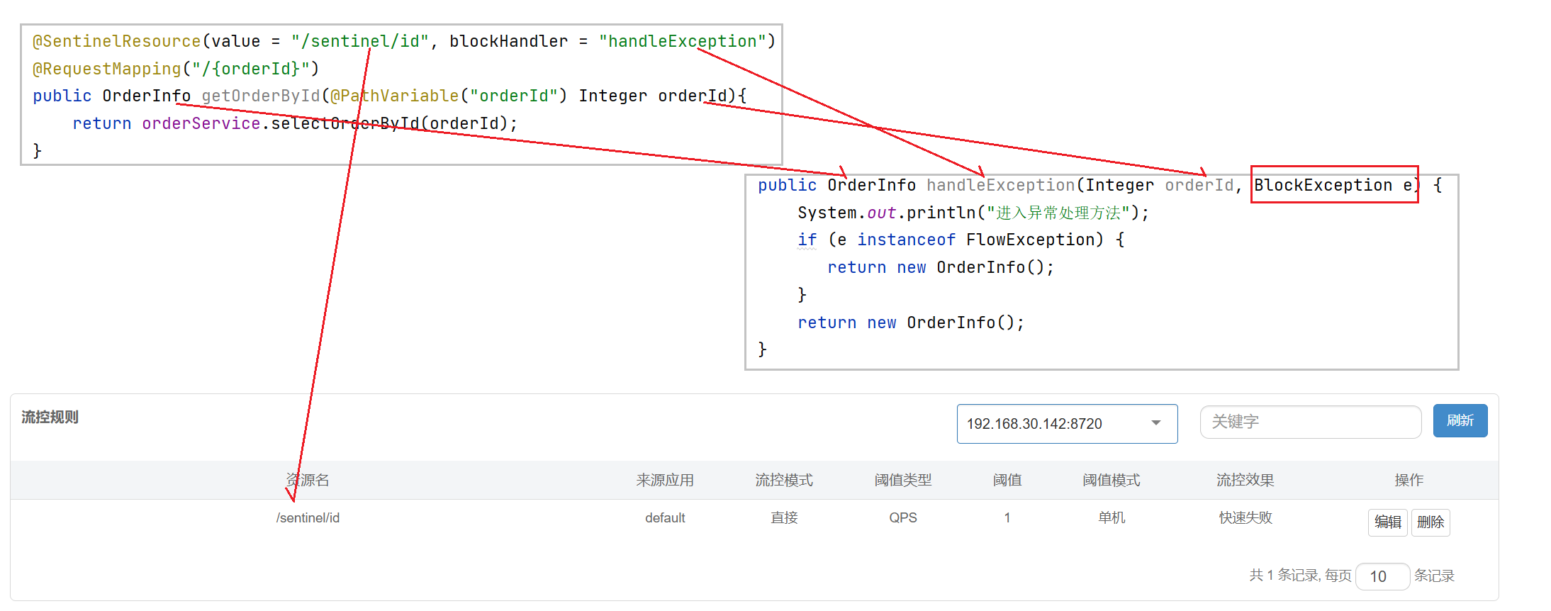} catch (BlockException e) {