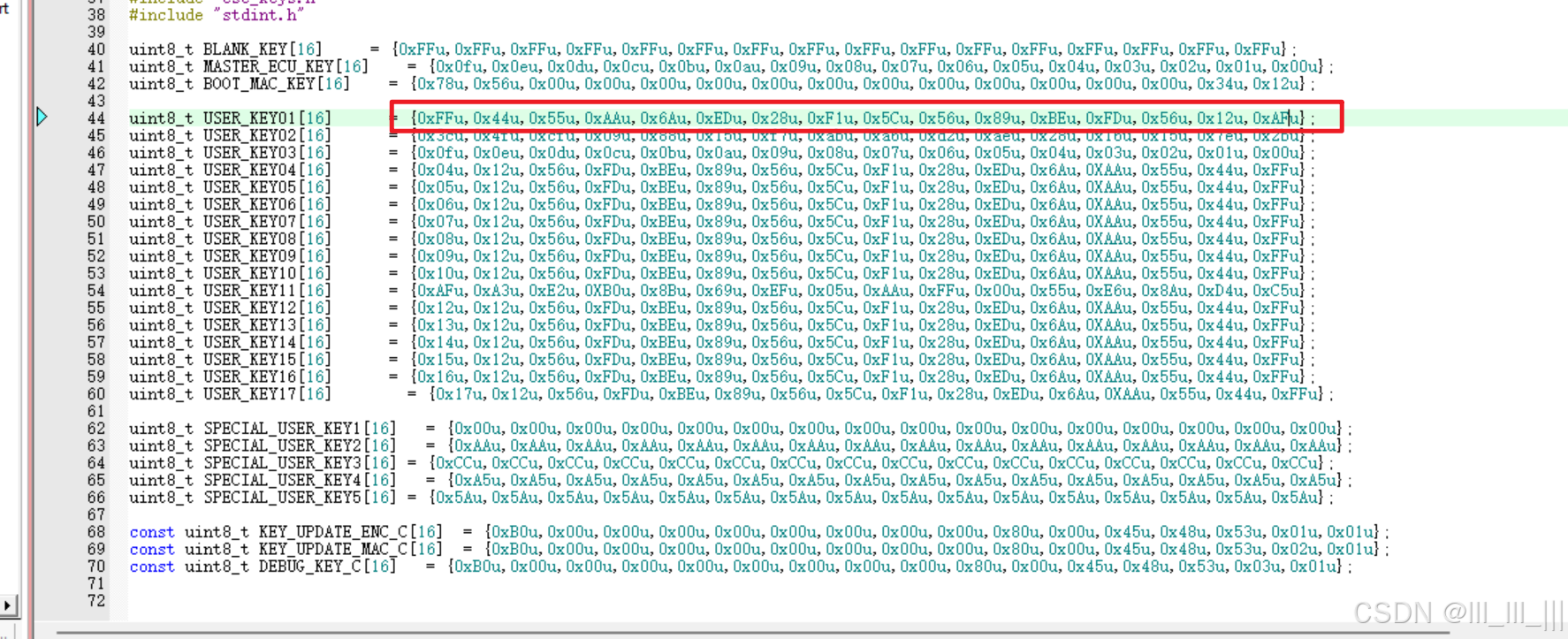 要注意后面的KEYID对应上,我测试时候忘了改后面的ID,前面的key数组改了,后面的id没改,导致用户秘钥更新自己一直失败。