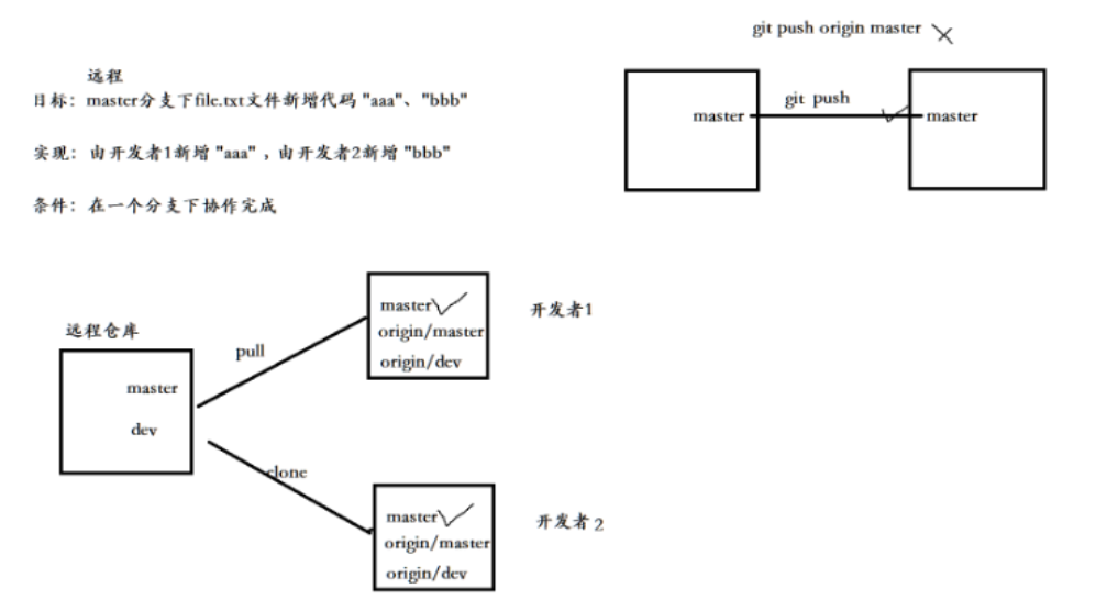 # 2. 要push的另一个原因是因为在实际的开发中,master的merge操作一般不是由我们自己在本地进行操作,其他人员或某些平台merge时,操作的肯定是远程分支,所以就要保持远程分支的最新。