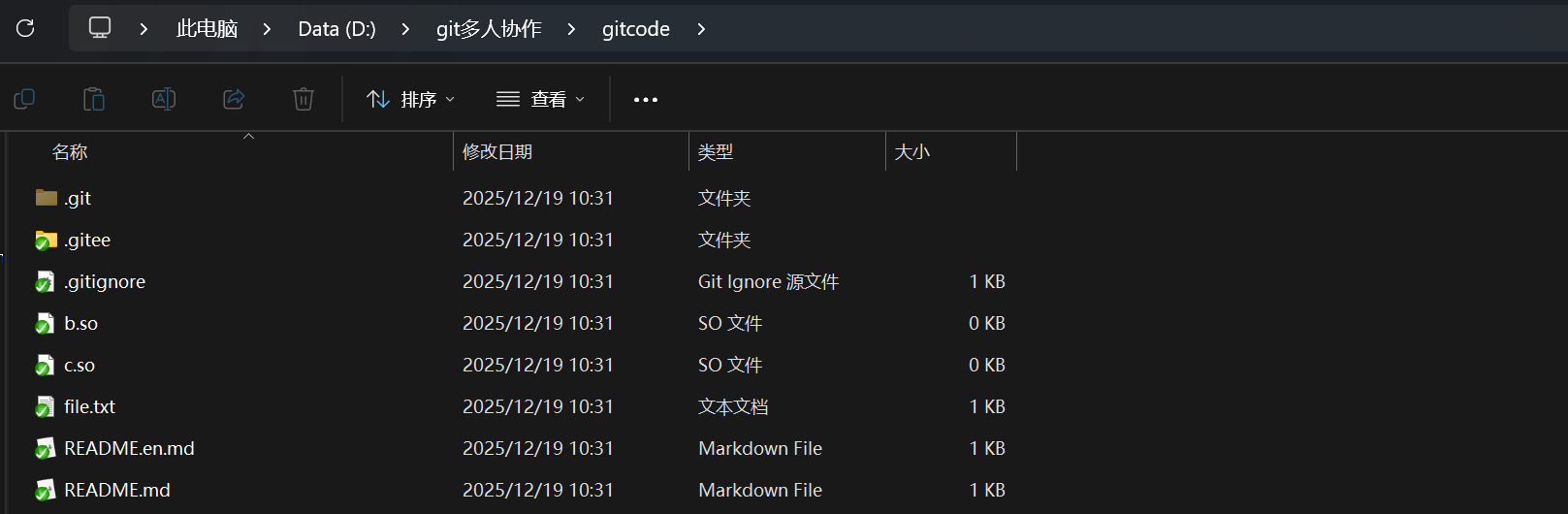 此时,就能发现我们clone成功了,在目录下也能看到我们远程仓库