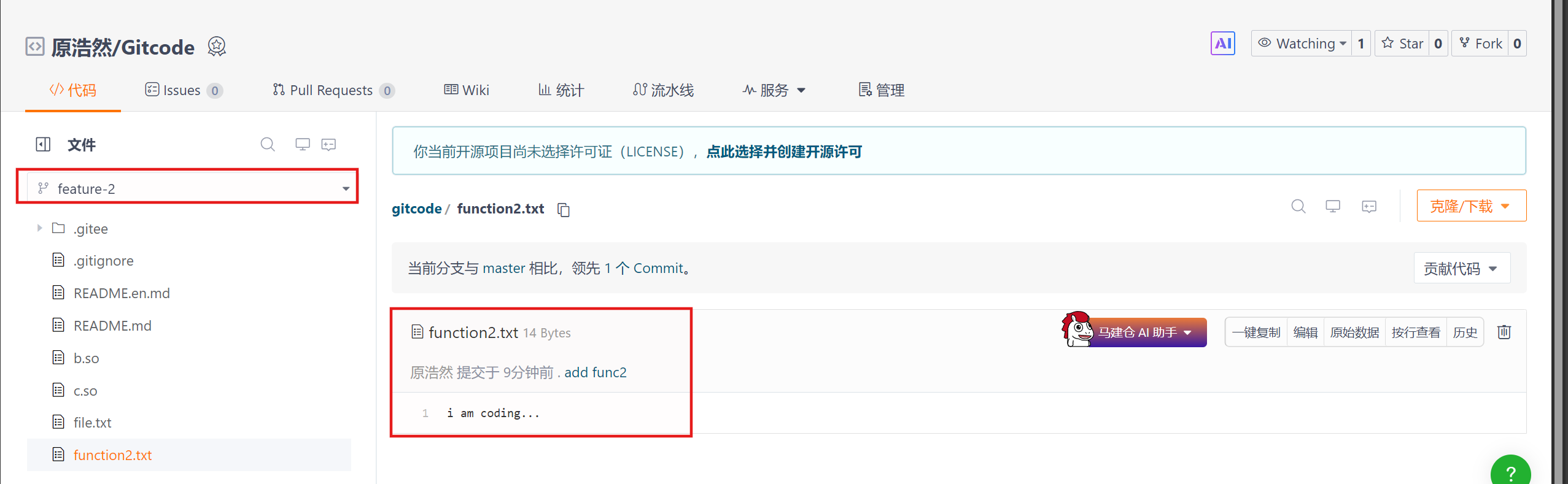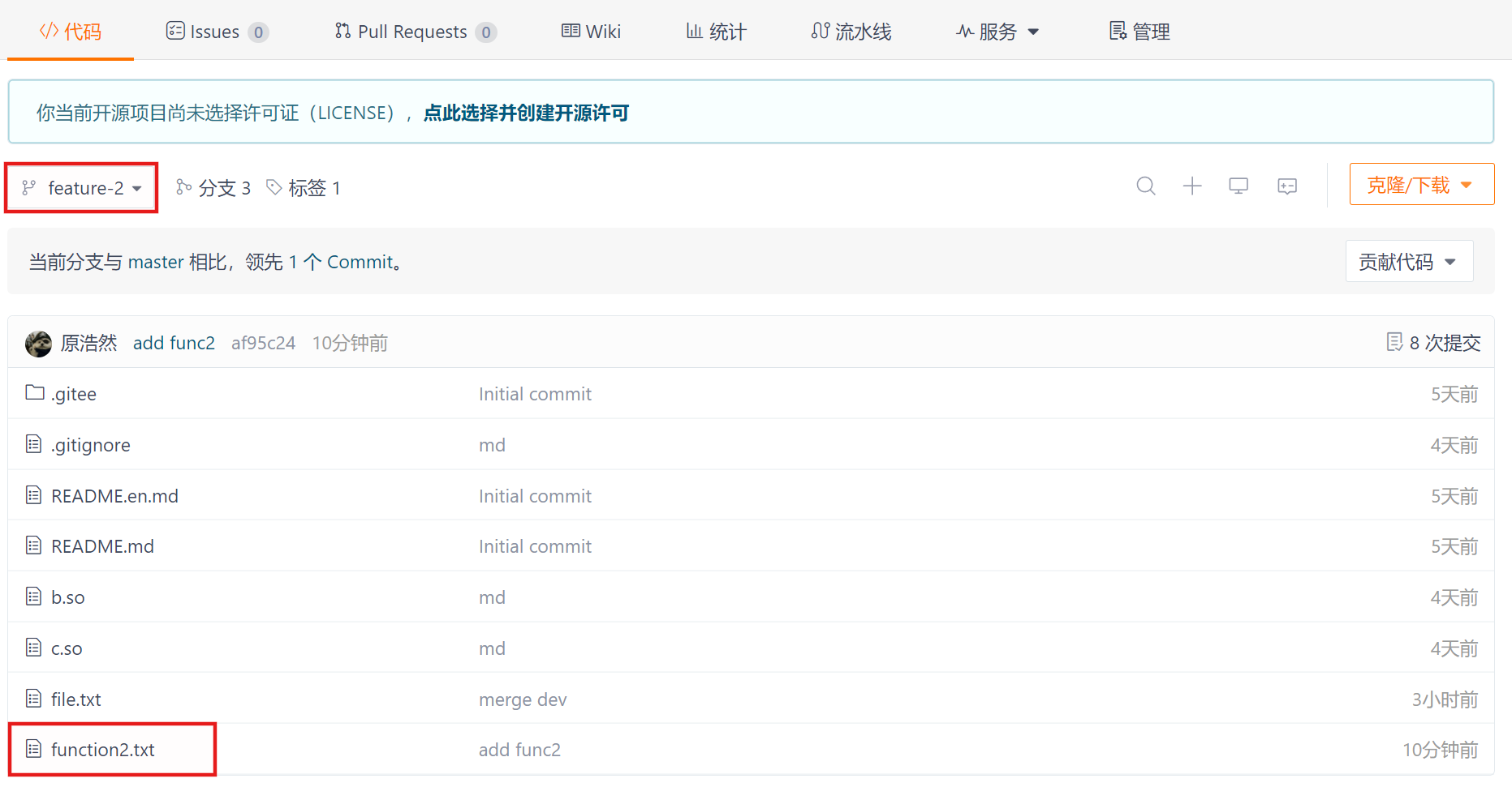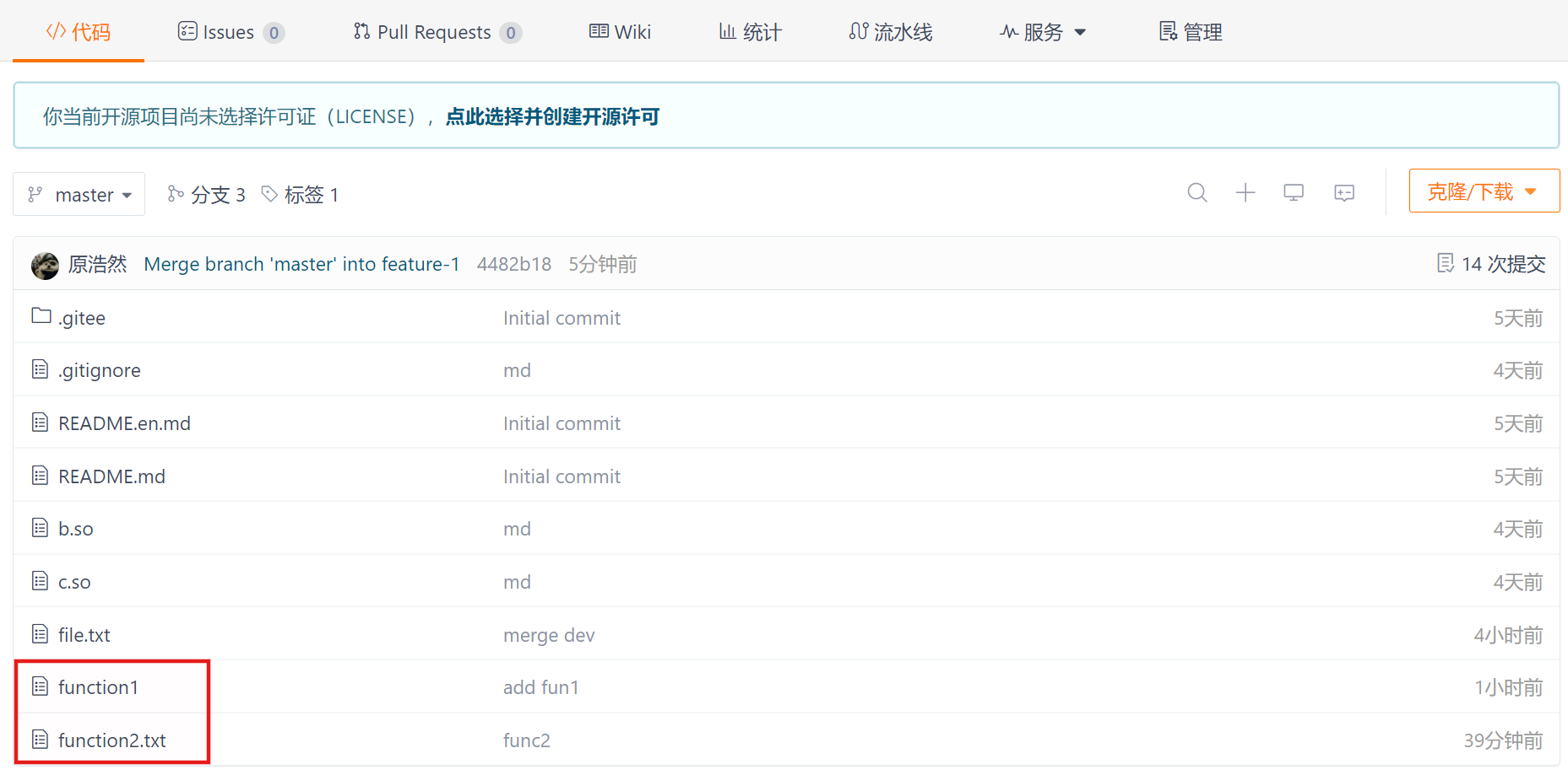 master 263bdff [origin/master] !1 feature-2合并到master Merge pull request !1 from 原浩然/feature-2
