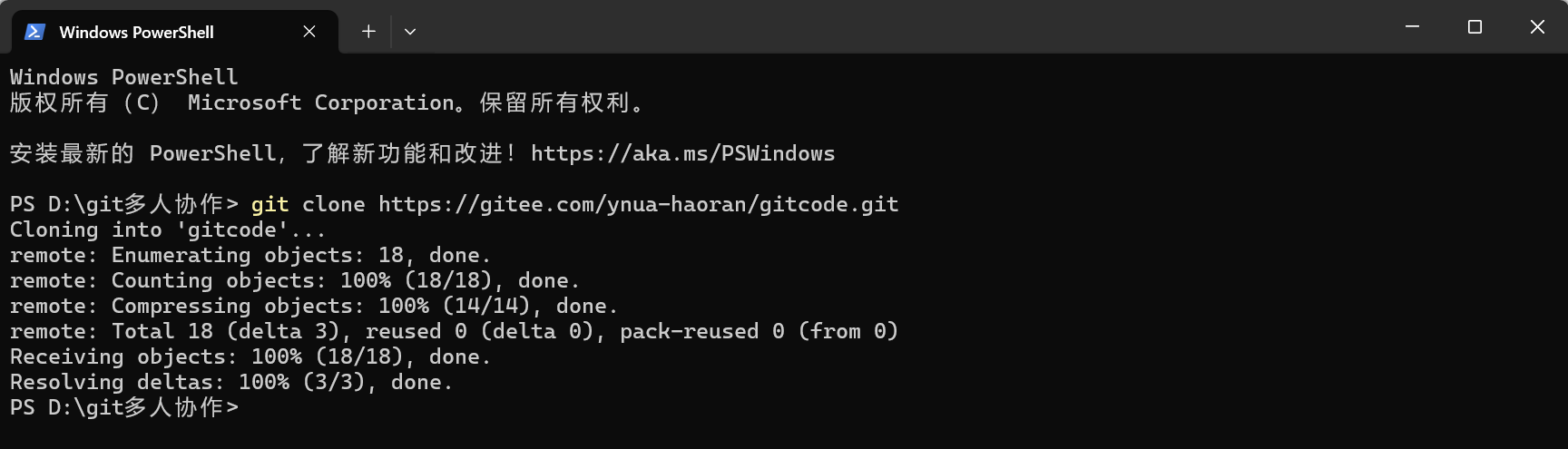我们在 windows 环境下,再 clone 同一个项目仓库,来模拟和我一起协同开发的伙伴: