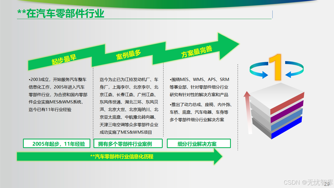 任何伟大的方案,都需要经过实践的检验。该方案的一大亮点是,其背后有超过11年的行业深耕 和数十家知名零部件企业的成功案例作为支撑。