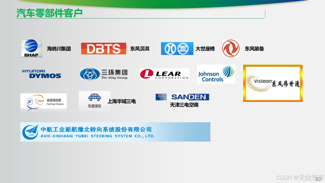 服务商已为动力总成(江铃发动机)、座椅(李尔、江森)、内外饰、车桥、底盘(北京亚太底盘)、汽车电器(东风伟世通)、车身、空调(天津三电)等多个细分领域提供了针对性的解决方案。这意味着,无论你的企业属于哪个赛道,都能找到可借鉴的经验。