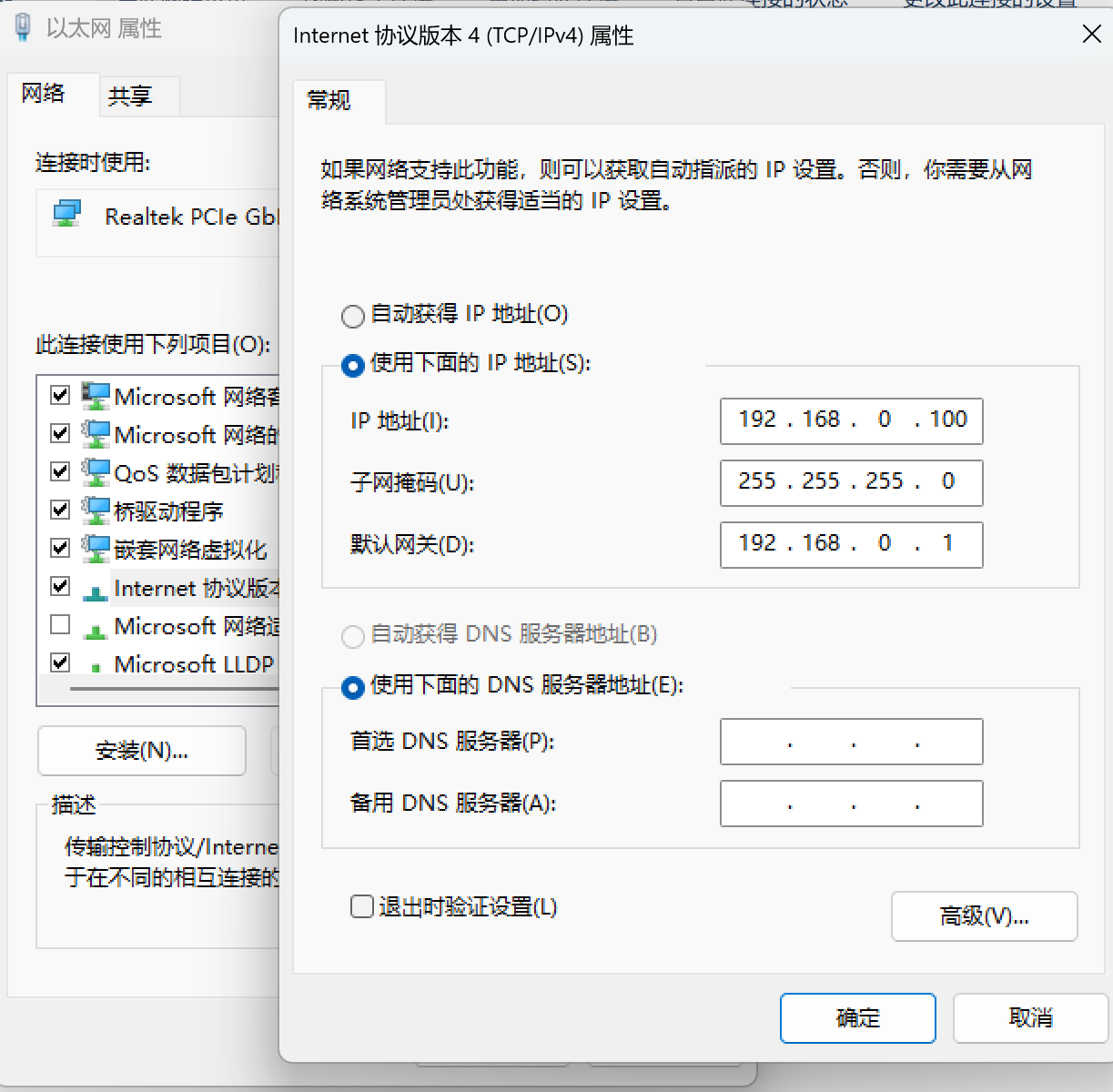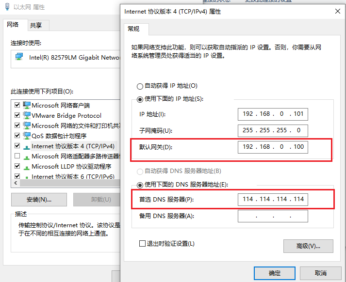 修改网关为笔记本有线网卡的ip并设置DNS信息,需要手动设置DNS,不然域名无法解析。