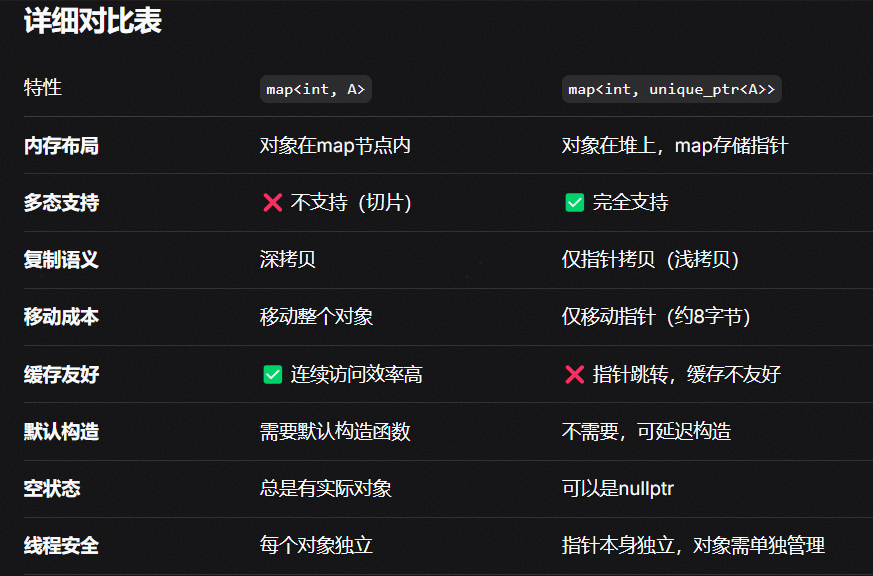 - 最容易出现问题指针存储方式:容器存储对象,map结构存储<key, 对象指针>,当容器变动(map的rehash,vector的扩容),导致对象重新分配内存存储,这样map结构中的对象指针将失效,从而引发coredump等严重问题
