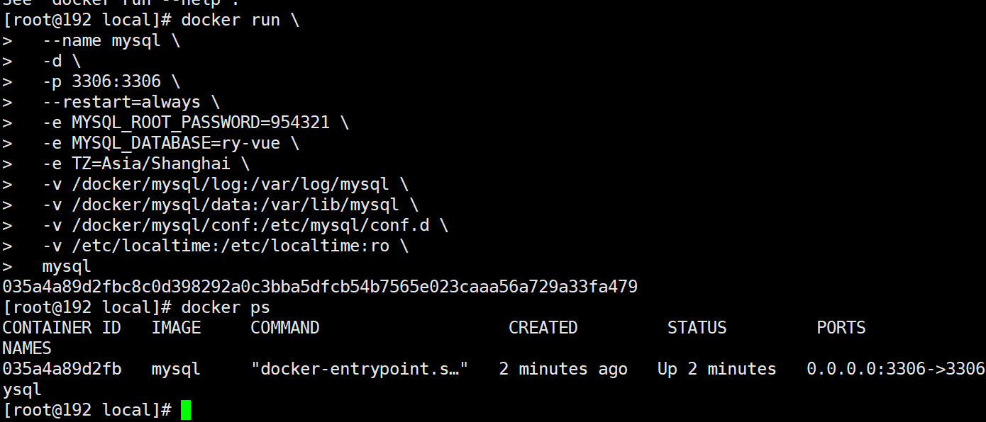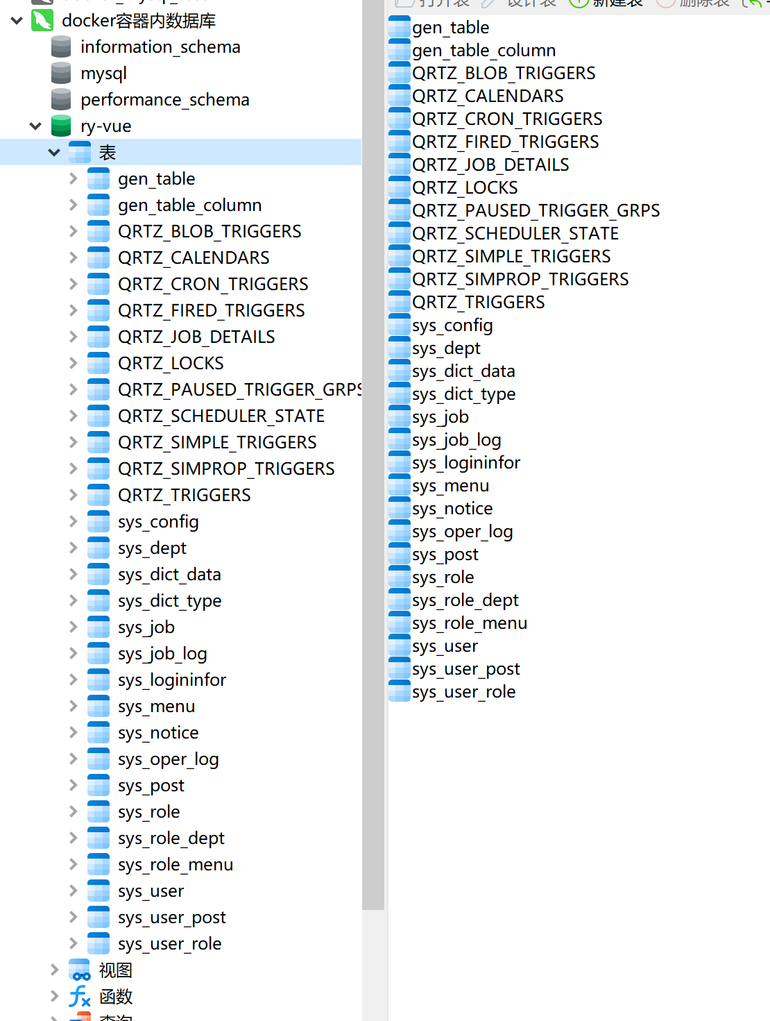 看到ry-vue数据库也创建成功了,说明我们的mysql容器就创建好了,