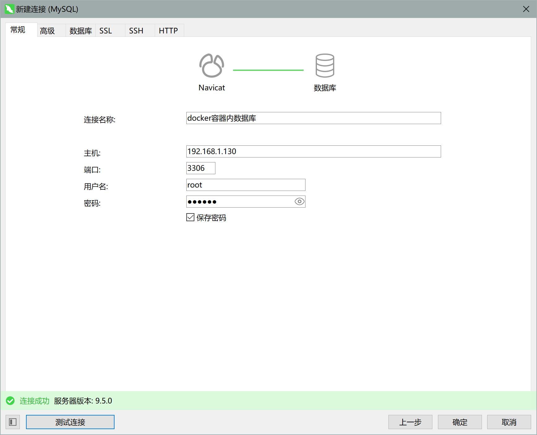 可以看到mysql容器就创建成功了,使用工具进行测试,看是否能够正常使用