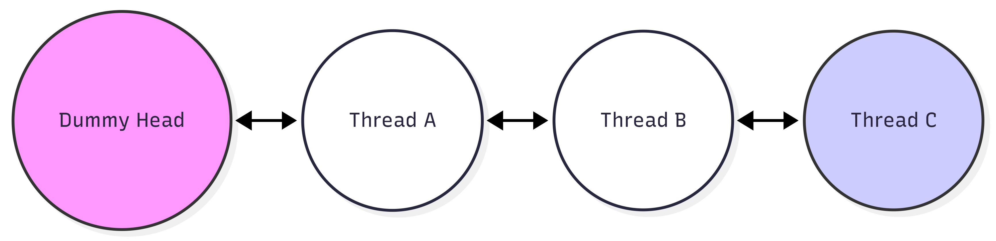 - 初始化时:head 和 tail 指向同一个空的 Dummy Node(哨兵节点)。