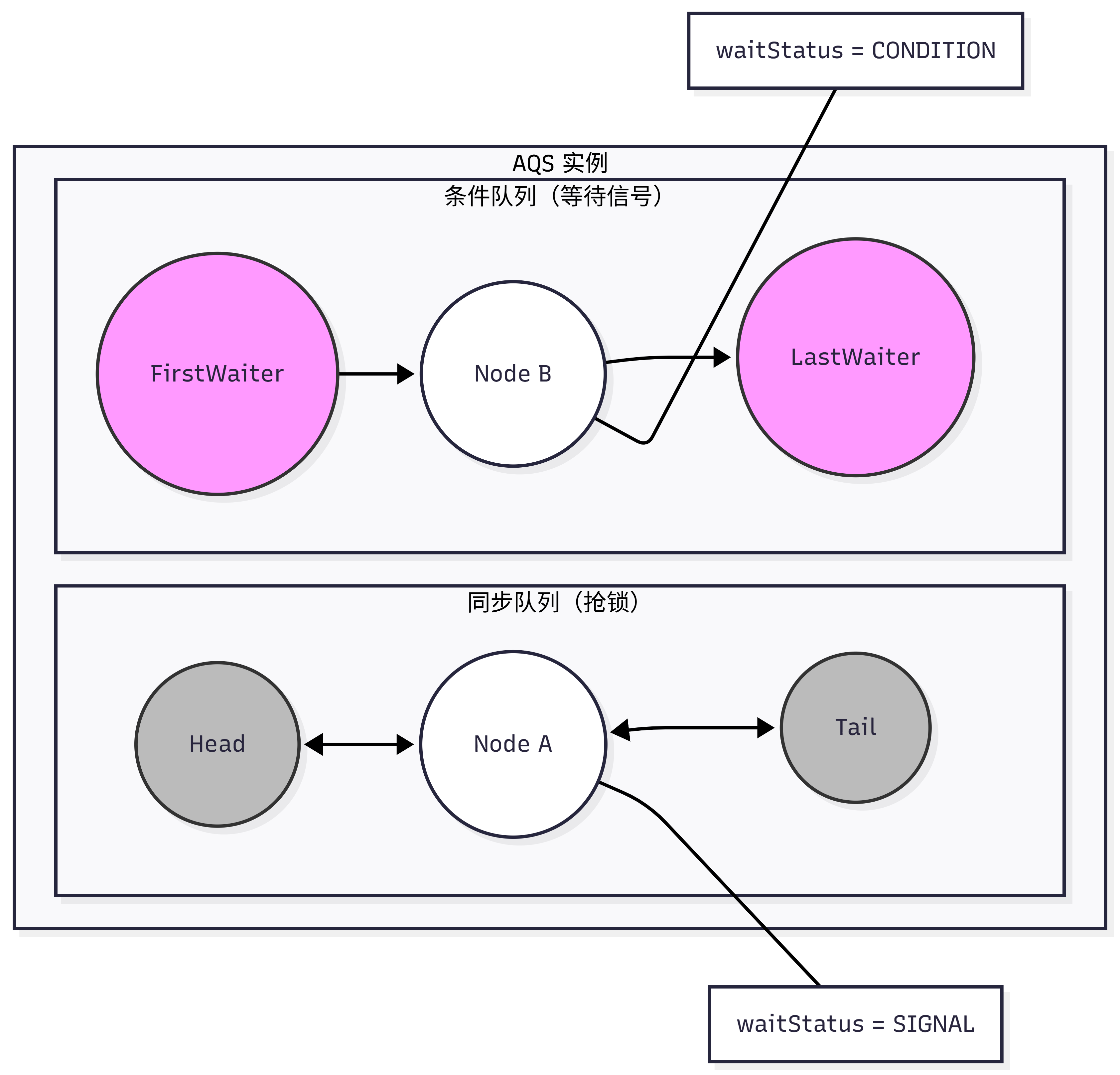 - CONDITION (-2):节点处于条件队列(Condition Queue)中,等待被 signal。