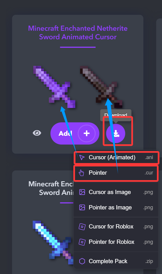 先在这个网站选择你喜欢的光标,这个按钮可以预览