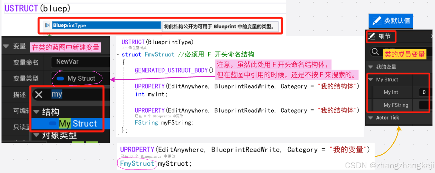 UE5 C++(17):结构体,USTRUCT(BlueprintType) struct FmyStruct ,必须用 F 开头