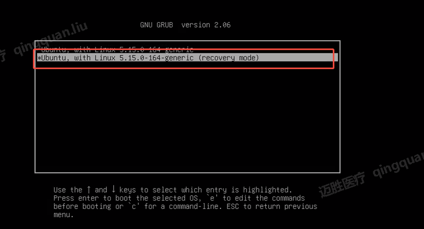 - 选择【Ubuntu, with Linux 5.15.0-164-generic (recovery mode)】