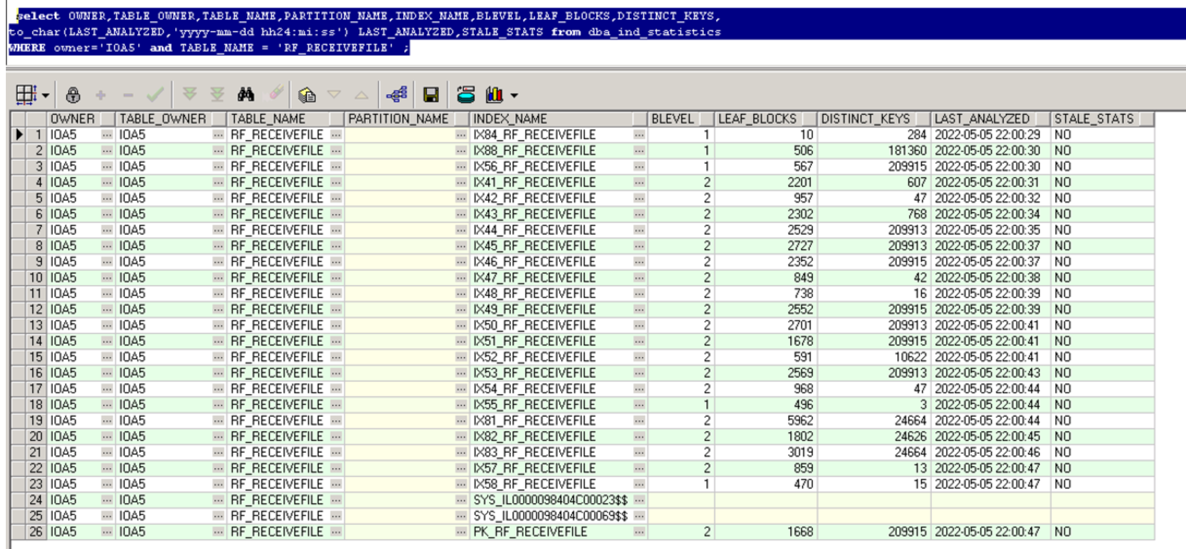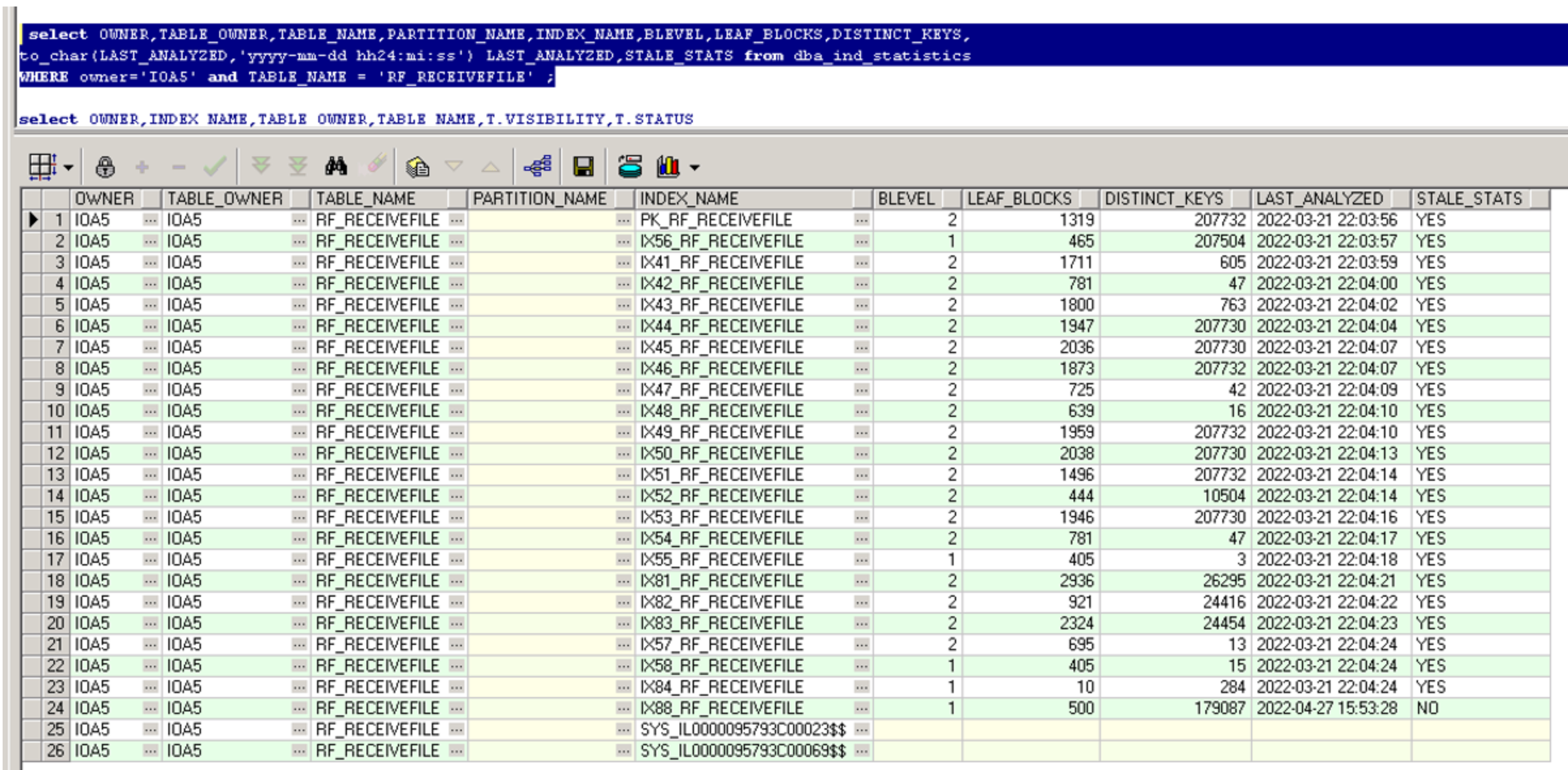 检查索引的统计信息: