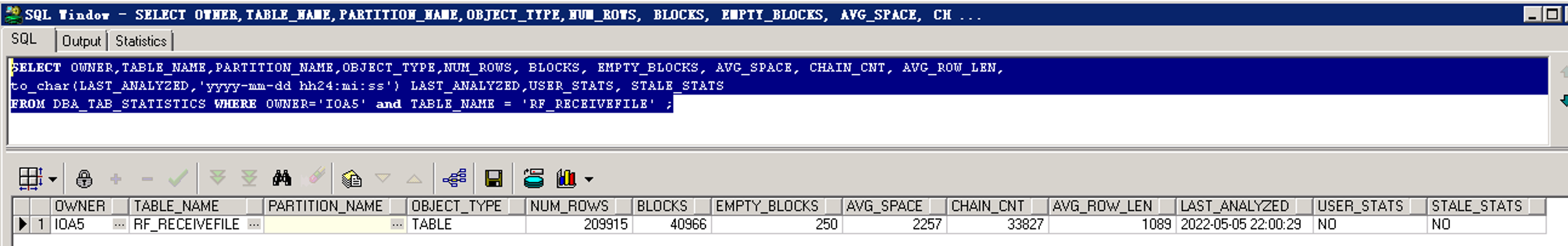 analyze table rf_receivefile compute statistics;