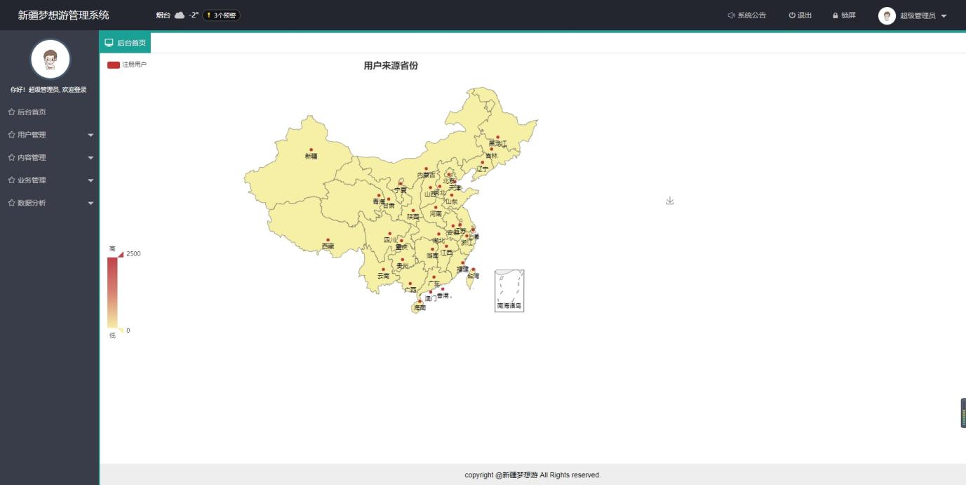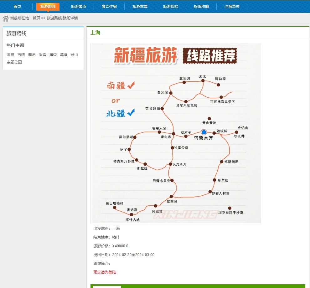 本文基于Java语言,使用MySQL作为数据库,应用B/S架构在SpringBoot技术下设计并开发一个新疆旅游管理系统。系统从游客和管理员的功能需求出发,可以实现游客对新疆旅游景点、旅游路线、餐饮住宿、旅游车票及攻略的查看和预订。系统管理员可对系统用户、订单业务、页面展示内容进行管理。