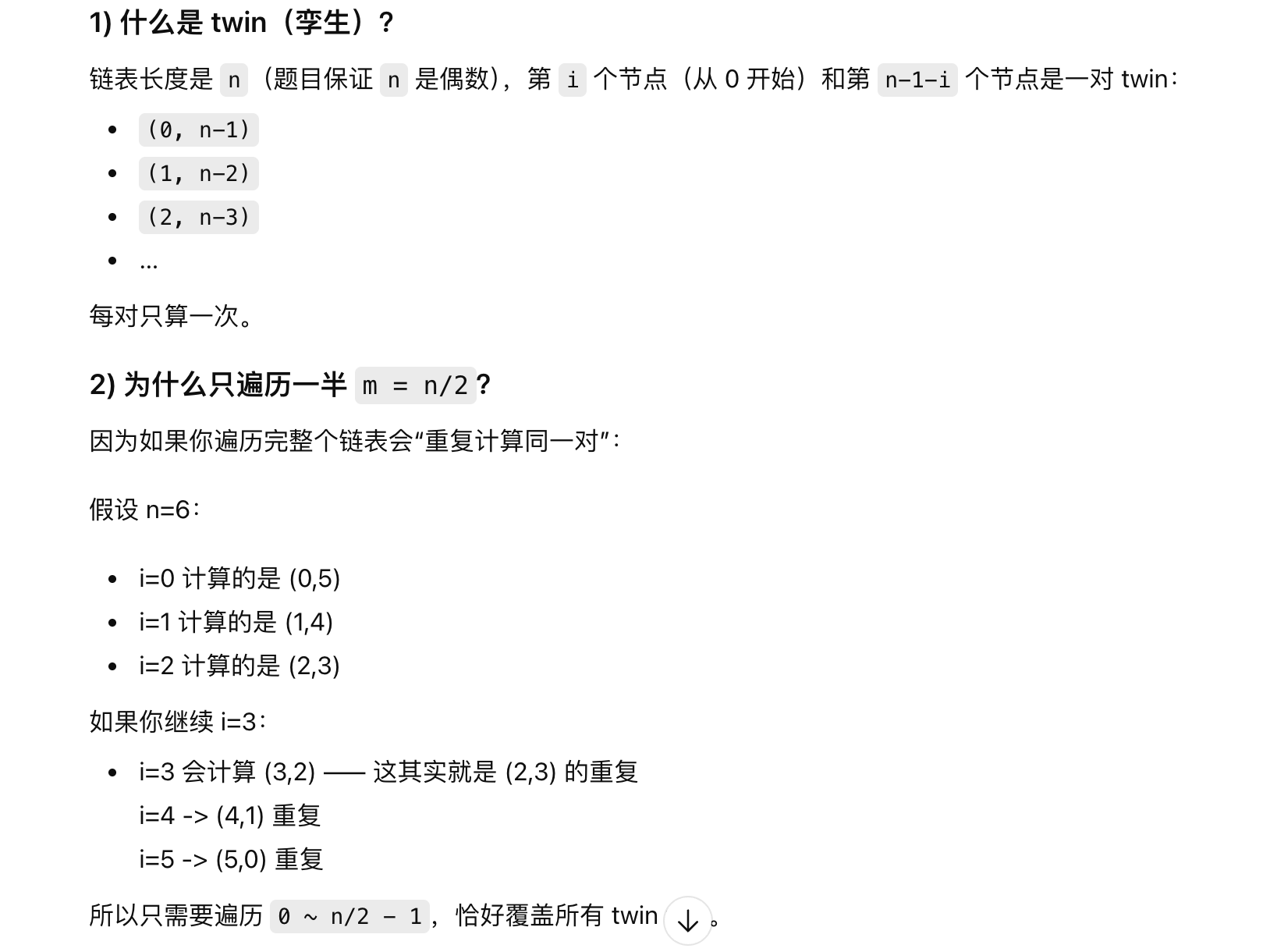 (3)计算每对 arr[i] + arr[n-1-i],维护最大值。