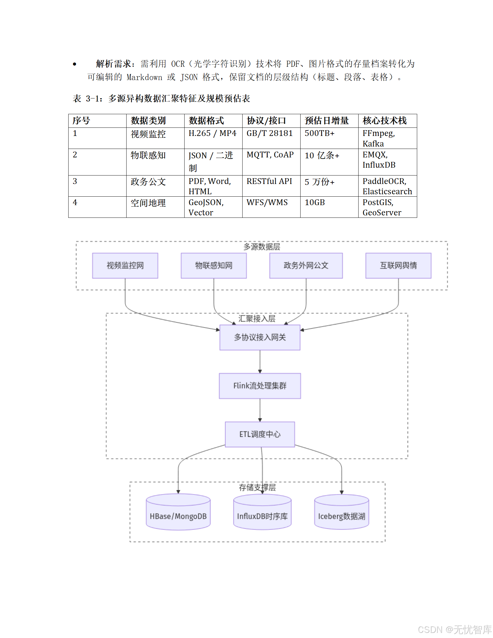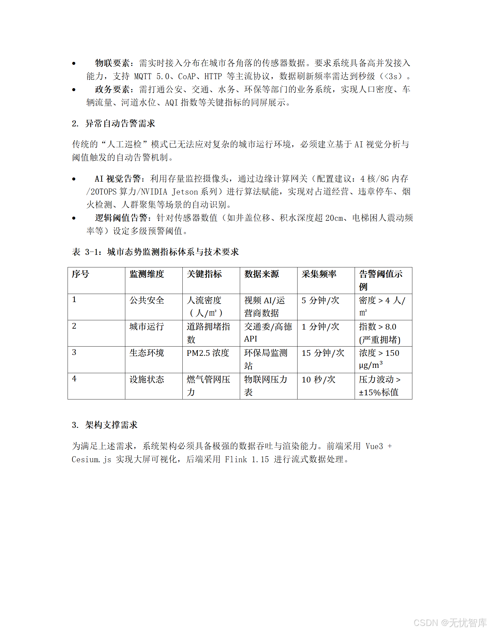 - 物联感知:日增量超10亿条,涵盖井盖、水位、空气质量等,需用Flink进行实时清洗。