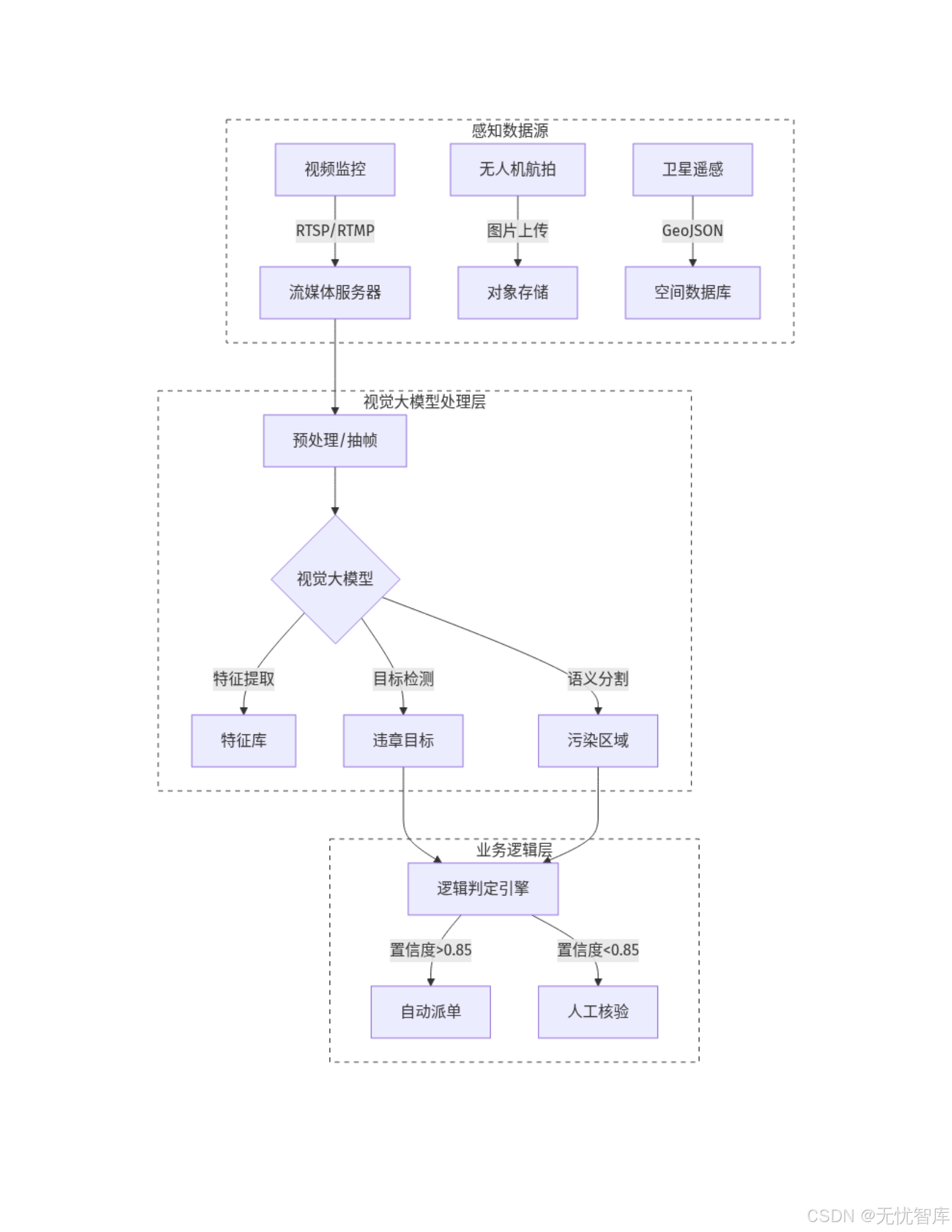 - 环境卫生(如垃圾堆放):置信度>95%,分派至城管局,4小时内响应。