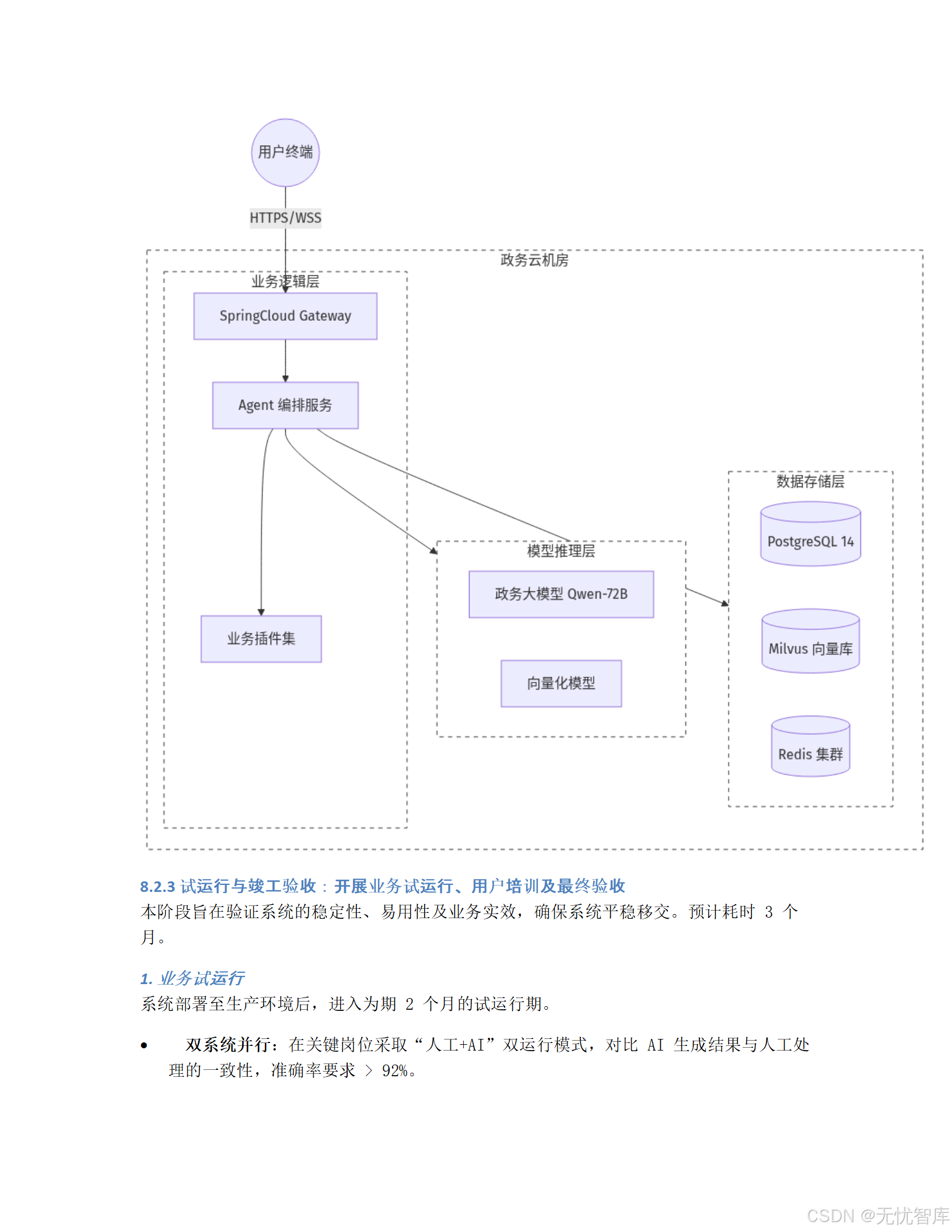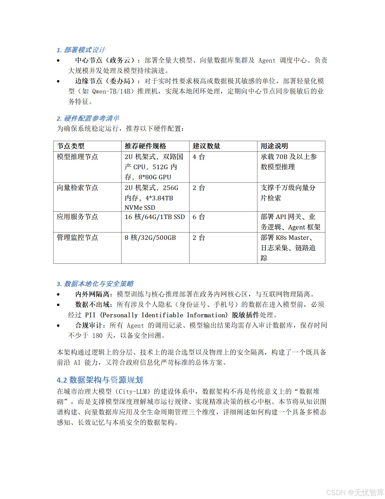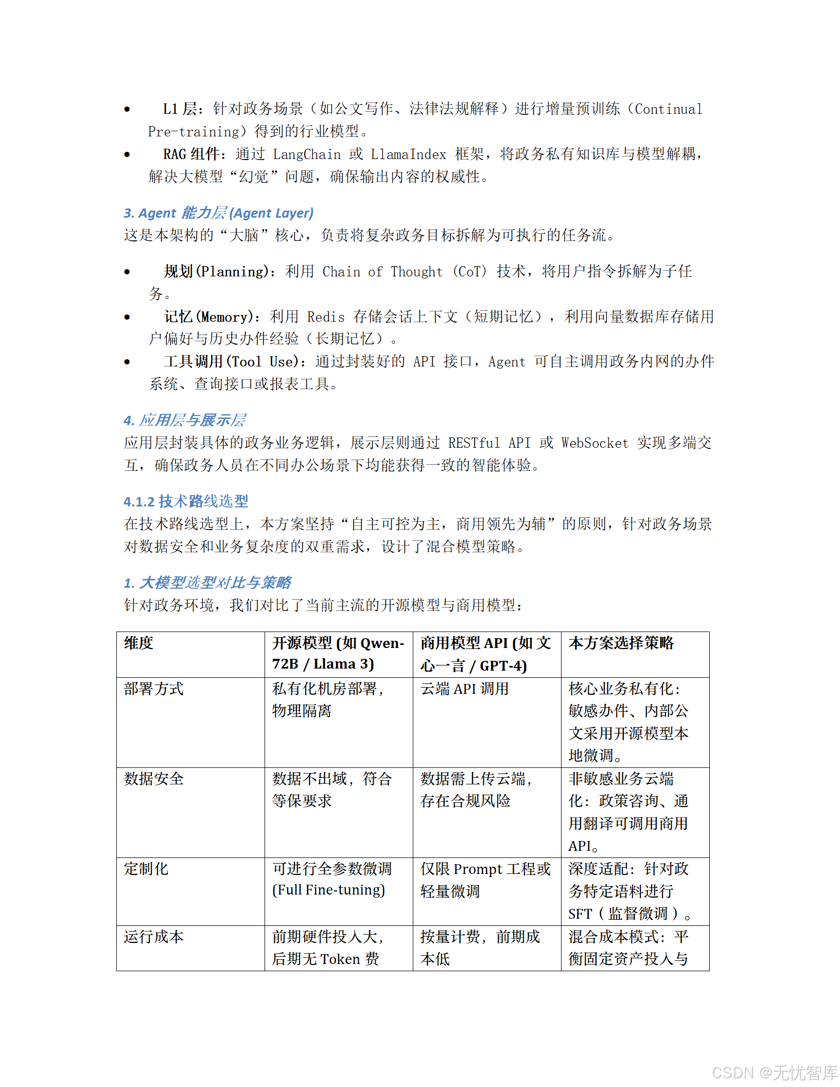 - 模型选择 :明确推荐选用Qwen-72B 或DeepSeek-V2等国产顶尖大模型。这不仅是出于技术性能的考量,更是响应国家信创战略,确保核心技术自主可控。