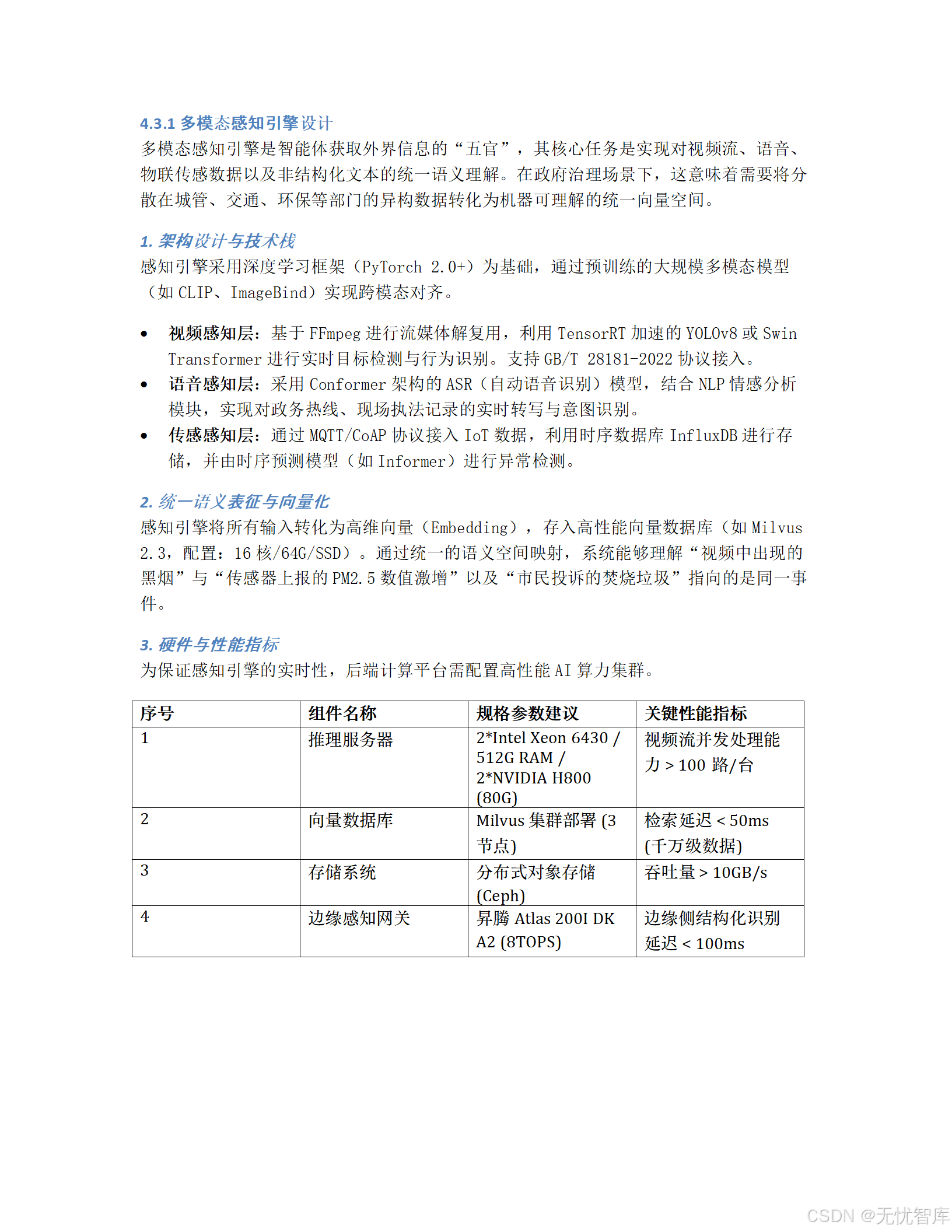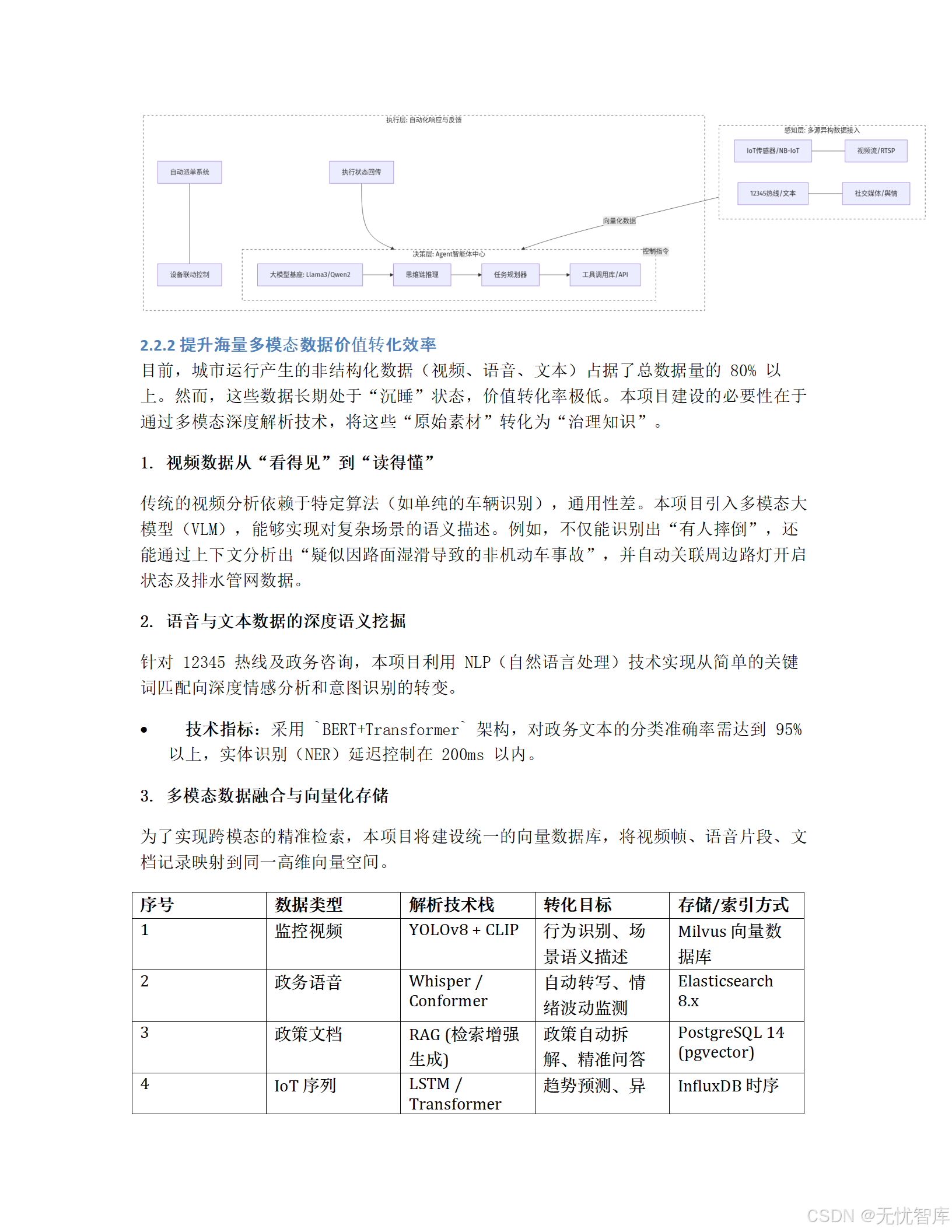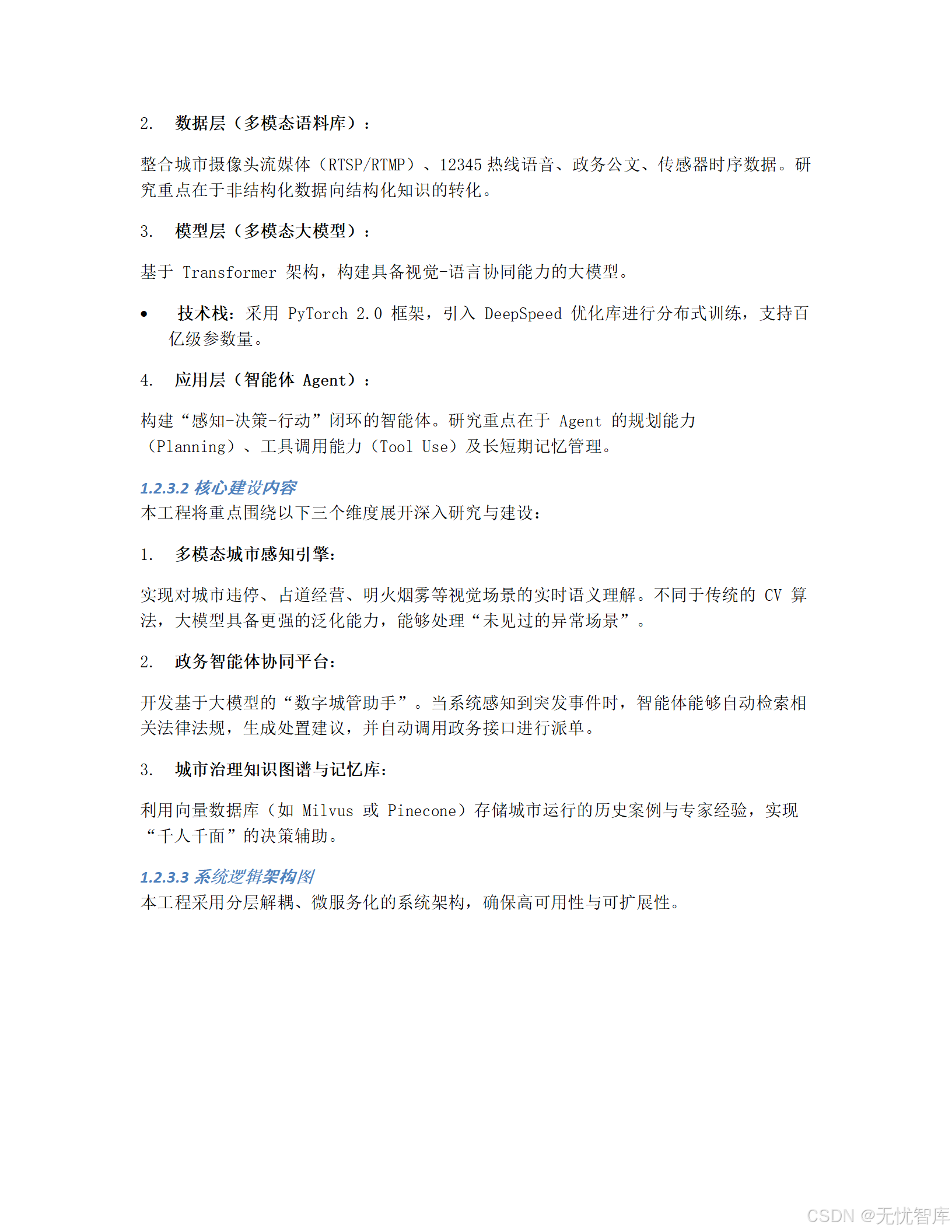 - 多模态数据融合:系统不仅要处理传统的文本数据(如公文、工单),更要能"看懂"视频监控画面、"听懂"语音投诉、"理解"物联传感数据。这要求底层模型必须具备强大的多模态(视觉-语言)融合能力。