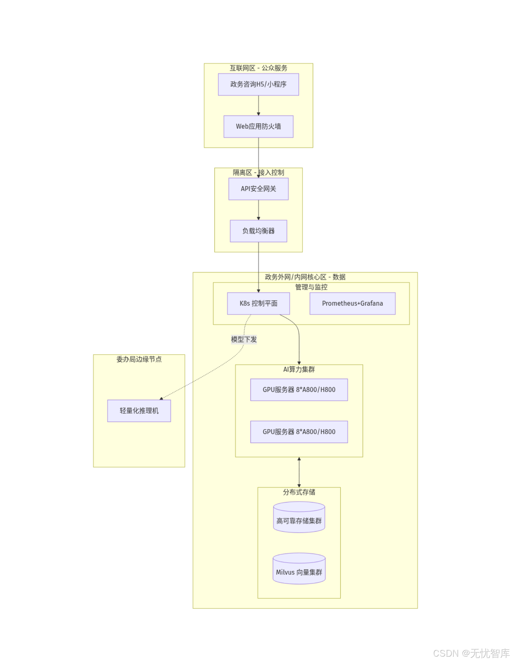 - 安全合规基座:所有数据处理和模型推理均在政务外网私有化环境中进行,严格遵循《个人信息安全规范》等国家标准,对敏感信息进行脱敏处理,筑牢安全防线。