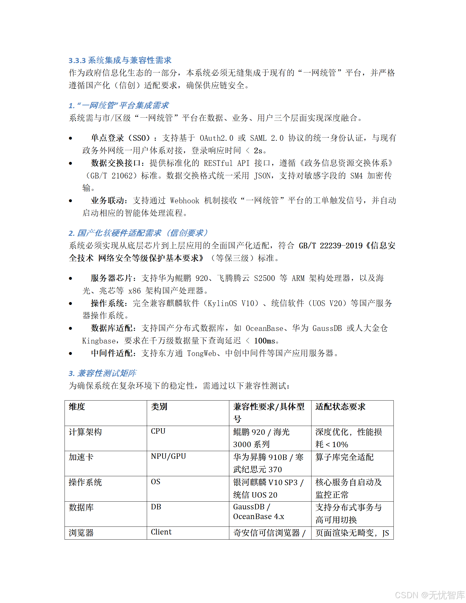 - 网络与安全:依托现有政务外网,构建"三网隔离、安全互联"的拓扑,确保数据不出政务外网。
