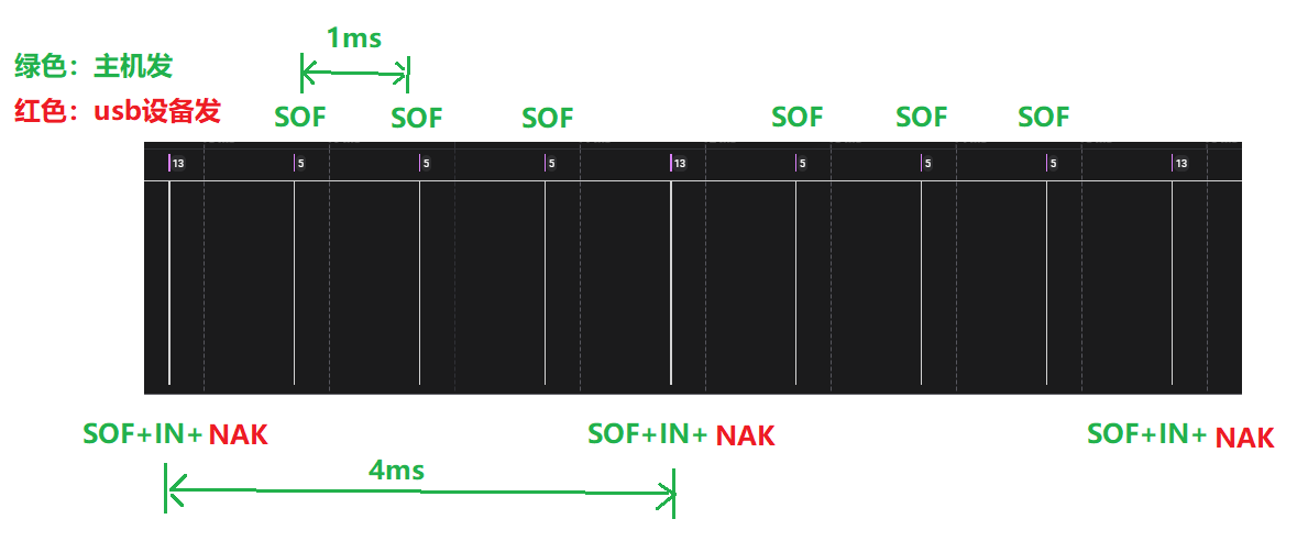 为什么是(SOF + IN + NAK) (SOF) (SOF) (SOF) (SOF + IN + NAK);这里每4ms就一包IN;