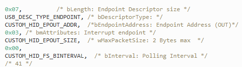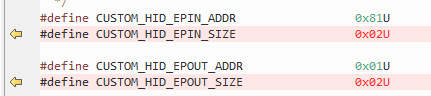 CUSTOM_HID_EPOUT_SIZE 定义了这些端点可以处理的最大数据包大小(这里为2字节)