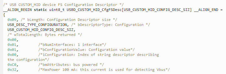 前面的设备描述符和配置描述符没有太大的差别,HID设备最重要的是HID描述符以下是官方的自定义HID描述符和鼠标HID描述符;