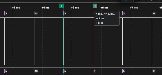 bInterval=5是「最小轮询间隔」,而非「绝对精准的轮询周期」,USB 主机的调度规则 + SOF 帧的特性,导致实际轮询间隔出现 1ms 偏移(4ms)是完全正常的。2.2.1. 先拆解看到的时序(SOF 间隔 1ms)