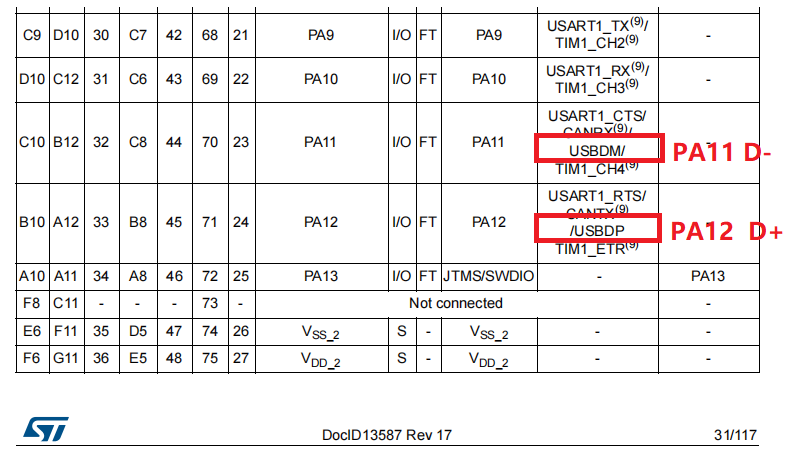 PA12(USB D+) --------逻辑分析仪通道0