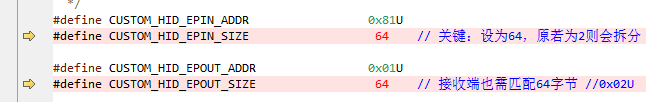 这是开发中最直接的差异,也是写代码时「最直观的感受」,和前面的配置描述符里 HID_EPIN_SIZE/CUSTOM_HID_EPIN_SIZE 强绑定!