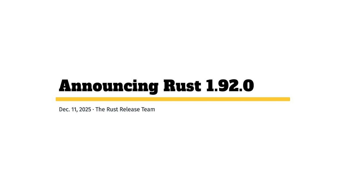 Rust 团队发布了 1.92.0 版本。这次的更新主要集中在语言一致性、编译检查严格度以及调试体验的优化上。