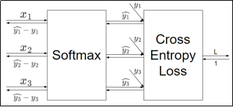 而对于输出层,一般会直接将结果代入损失函数的计算。对于我们之前介绍的分类问题,这里选择交叉熵误差(Cross Entropy Error)作为损失函数,就可以得到一个Softmax-with-Loss层,它包含了Softmax和Cross Entropy Loss两部分。