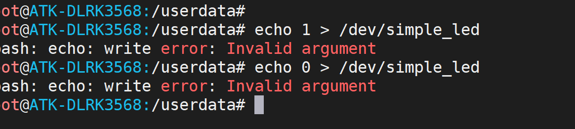 控制:echo 1 > /dev/simple_led(开灯)、echo 0 > /dev/simple_led(关灯)
