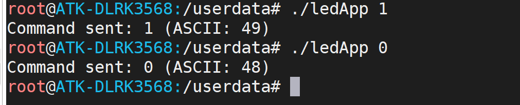 dmesg | grep LED,能看到亮灭对应的寄存器值和提示。