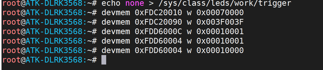 devmem 0xFDD60004 w 0x00010000 # 测试亮后再执行此指令灭灯