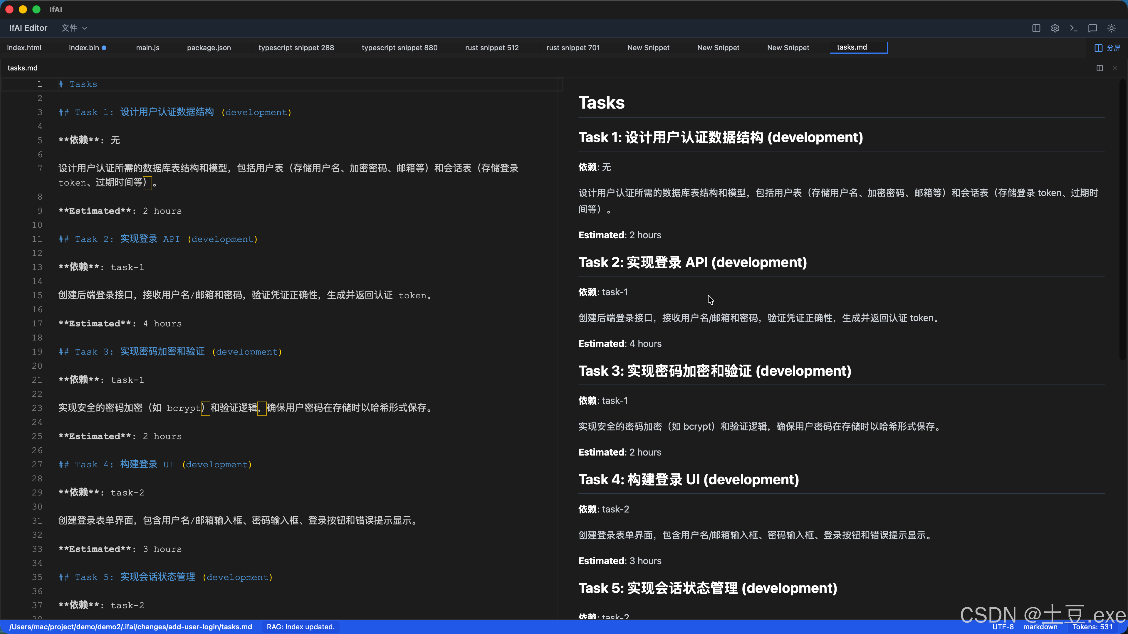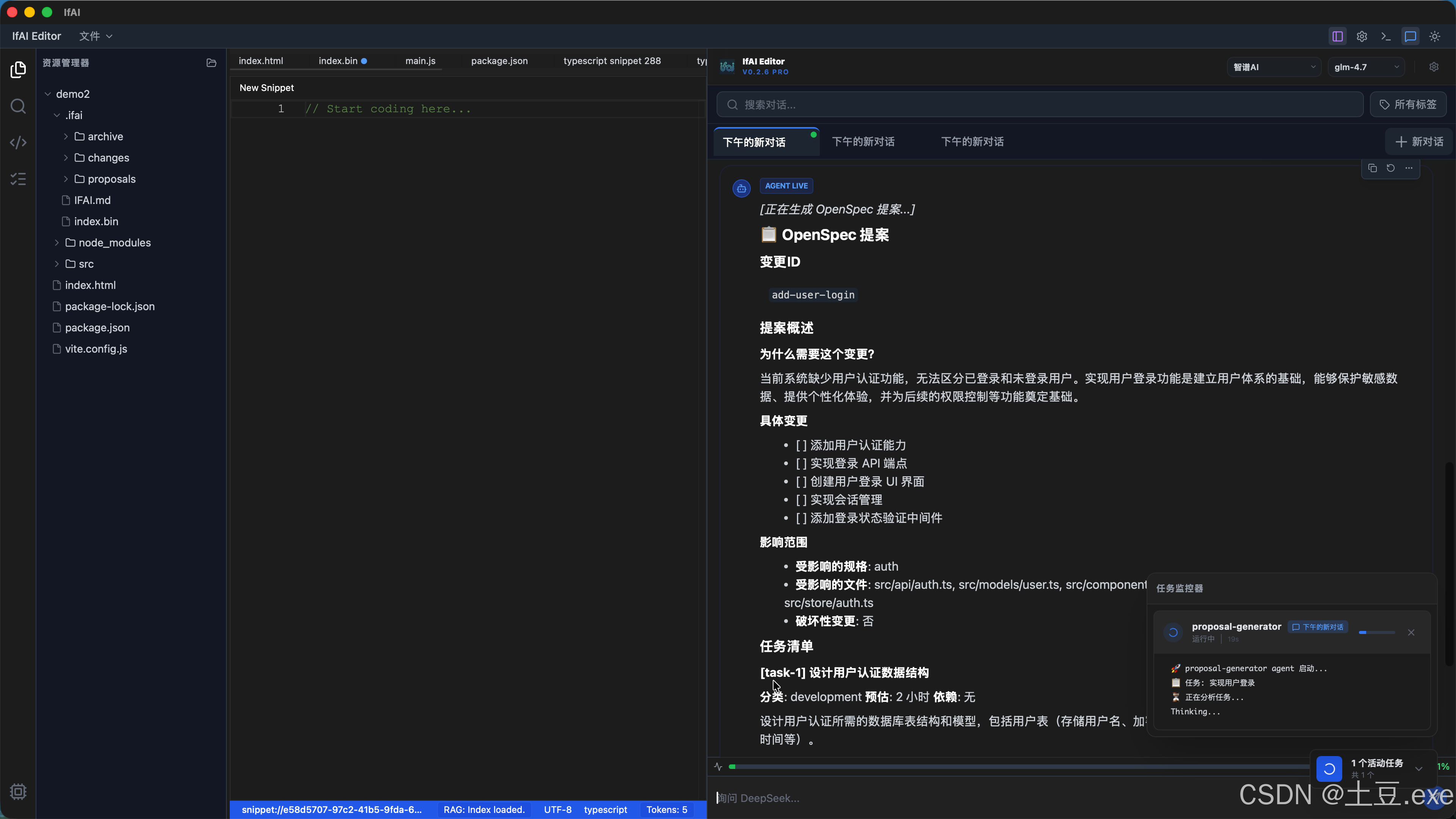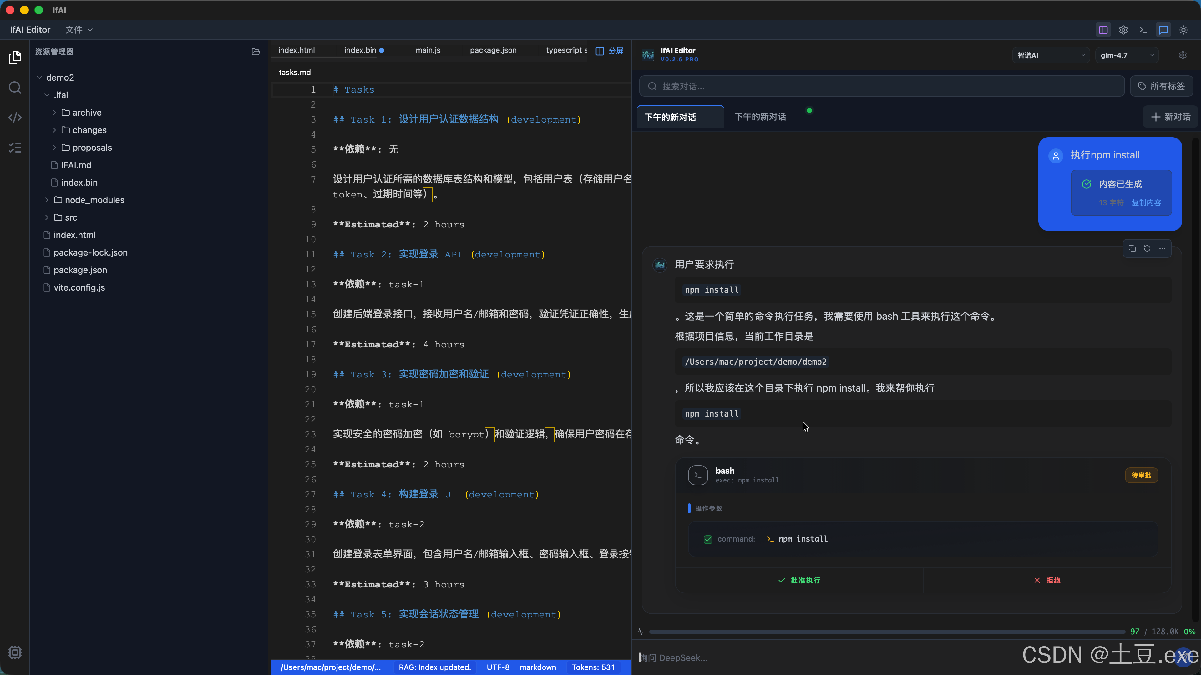 IfAI v0.2.6 是我们在 AI Agent 自主性 与环境感知能力 上的里程碑式更新。在这个版本中,我们不仅赋予了 Agent 使用 Shell 命令的强大能力,更构建了一套具备自我纠错和路径感知的健壮执行框架。同时,全新的任务拆解服务让 AI 能够像资深架构师一样,将复杂需求转化为结构化、可追踪的任务树。