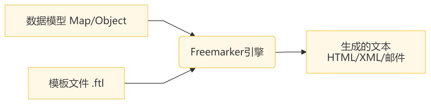 Freemarker 是一个模板引擎,核心作用是将 "数据" 和 "模板" 结合,动态生成文本内容(HTML、XML、邮件等)。