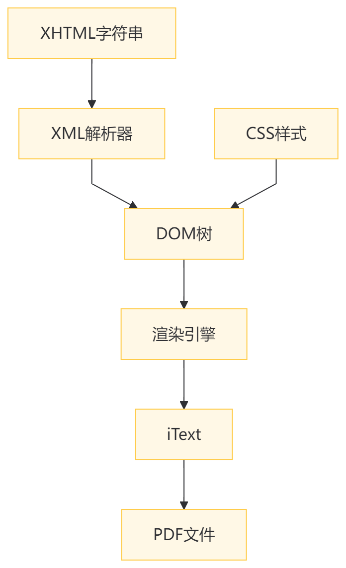 org.xhtmlrenderer.pdf.ITextRenderer 是 Flying Saucer 库的核心类,专门用于将 XHTML + CSS 内容渲染成 PDF 文件。 是一个"HTML 转 PDF"的桥梁,它的 XML 严格性要求导致你必须正确处理 & 等特殊字符。