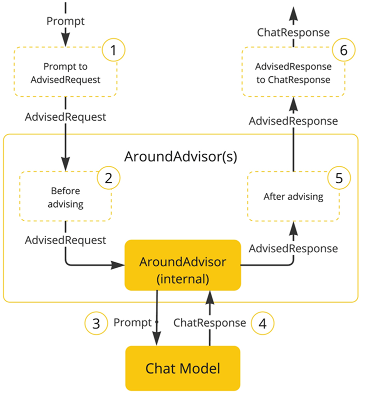 SpringAI基于AOP机制实现与大模型对话过程的增强、拦截、修改等功能。所有的增强通知都需要实现Advisor接口。