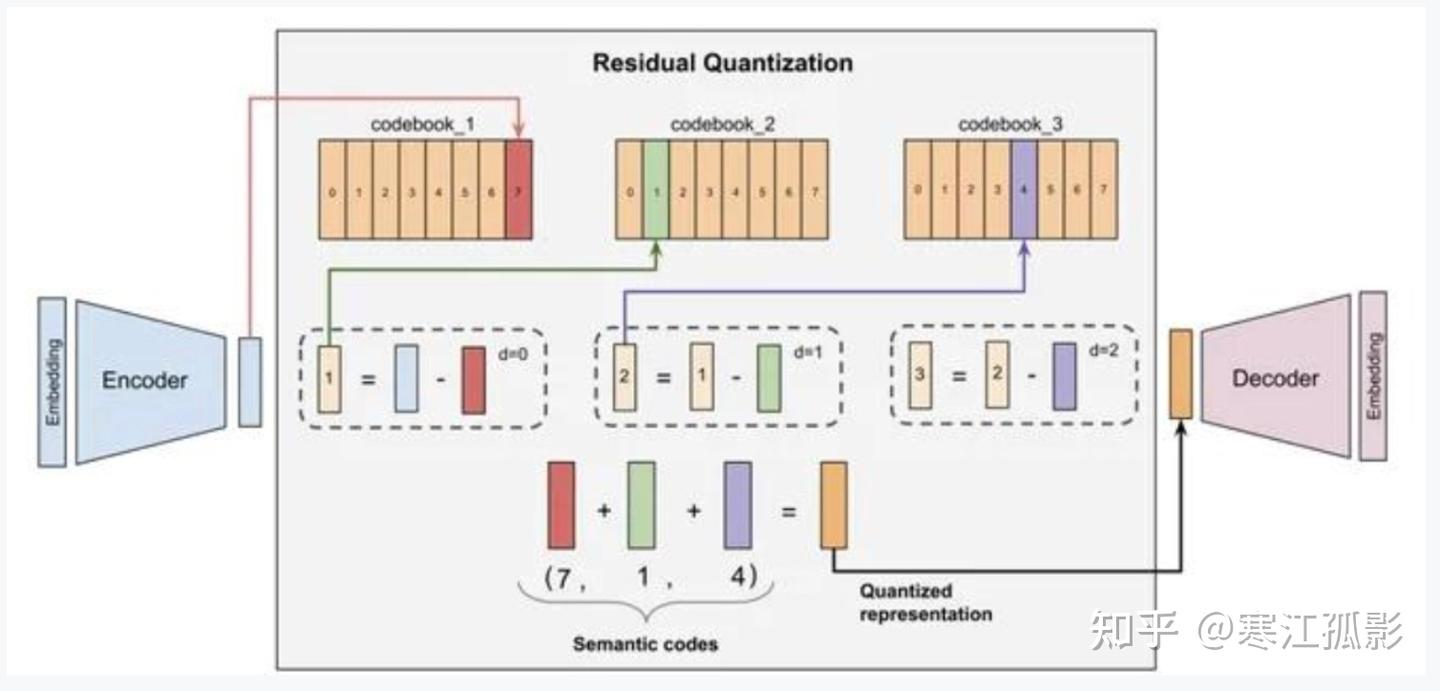 RQ-VAE(Residual Quantized Variational Autoencoder)变比VQ-VAE多了学习残差的过程,一个码本变为多个码本