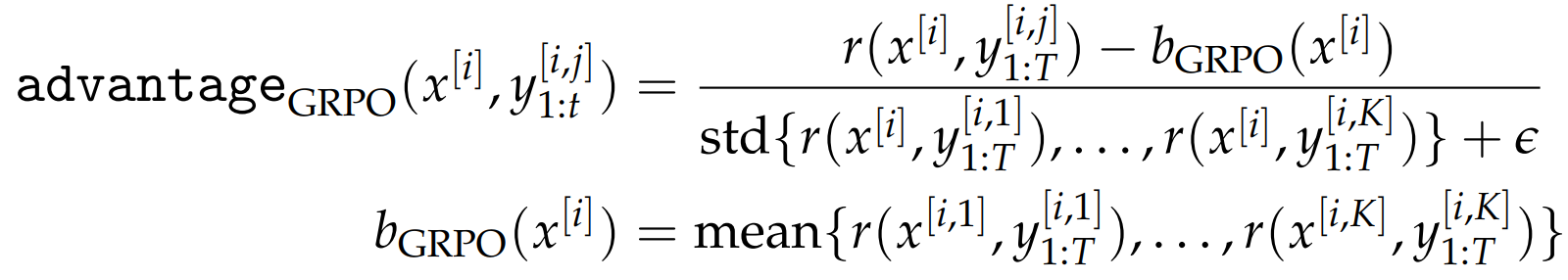 - GRPO:摒弃了价值网络估计,直接采用奖励值的统计量构建基准值;(优势值归一化)