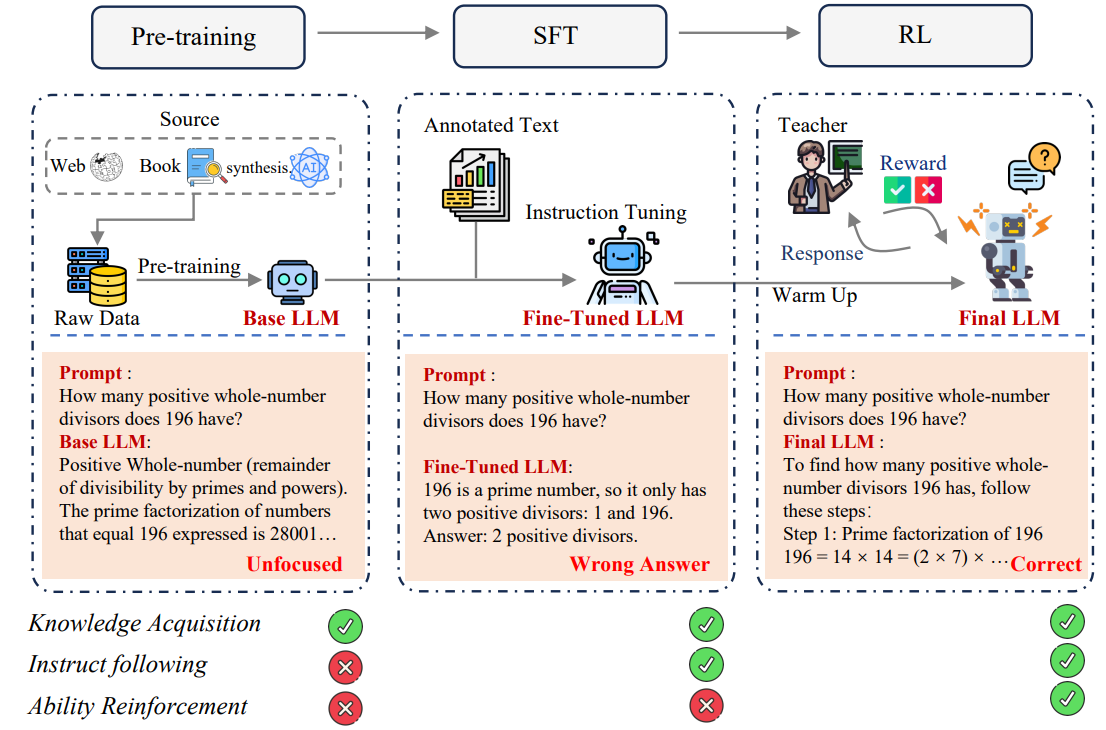 关于大语言模型后训练阶段能力本质的核心争论:强化学习究竟是在传授新知识 ,还是在优化现有知识的表达方式?这一认知又如何塑造我们发展模型能力的方法路径。