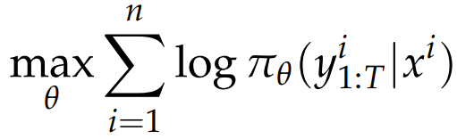 监督微调 SFT 最大似然估计的目标函数: