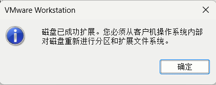 扩展成功截图!但是并没有完全进行扩容,还需要进一步操作。